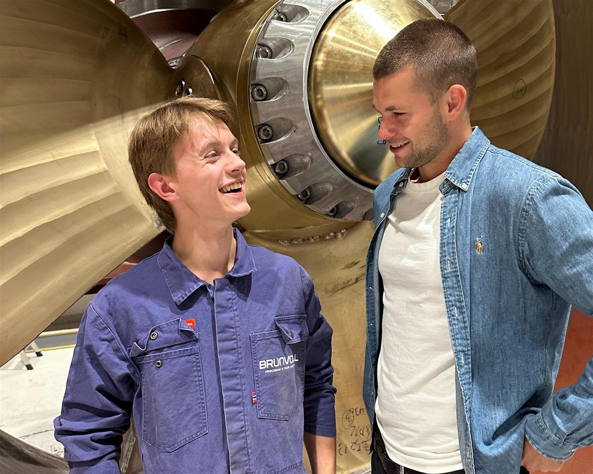 - God informasjonsflyt er viktig for å ta i mot lærlingar på ein god måte, i følgje Fredrik Wicken, HR-konsulent på Brunvoll AS. Her i dialog med lærling Aleksander Gagnat.