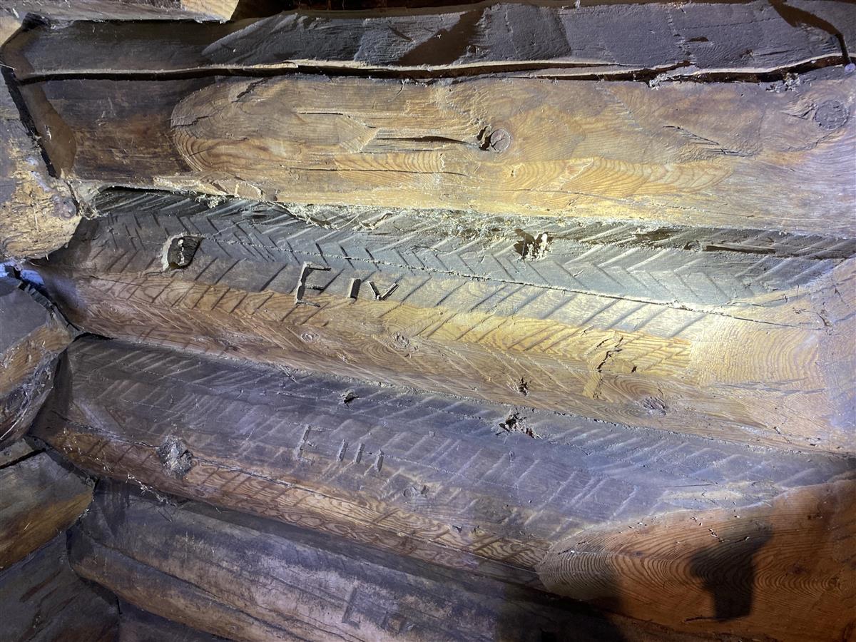 Den gamle lafteteknikken spretteljing er brukt på tømmeret.
